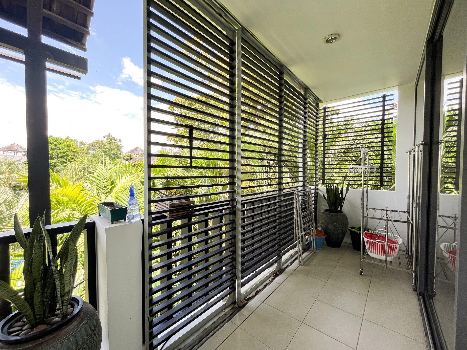 Surrounded by gentle hills, in a lush tropical garden with two pools, gym and sauna.