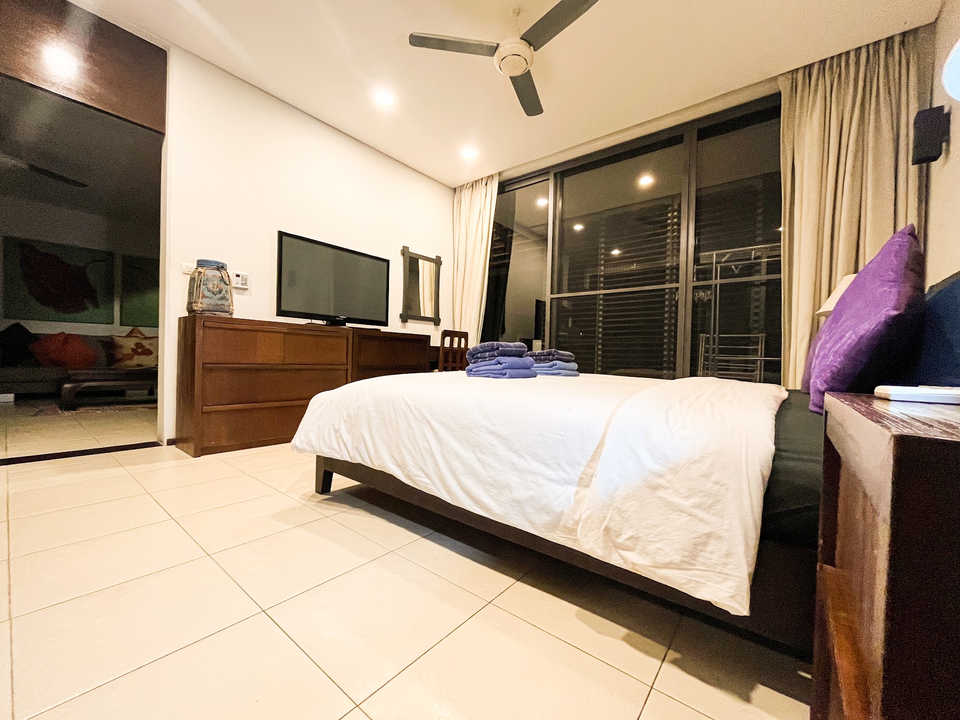 Air conditioning and ceiling fans in both bedrooms and in the living room.