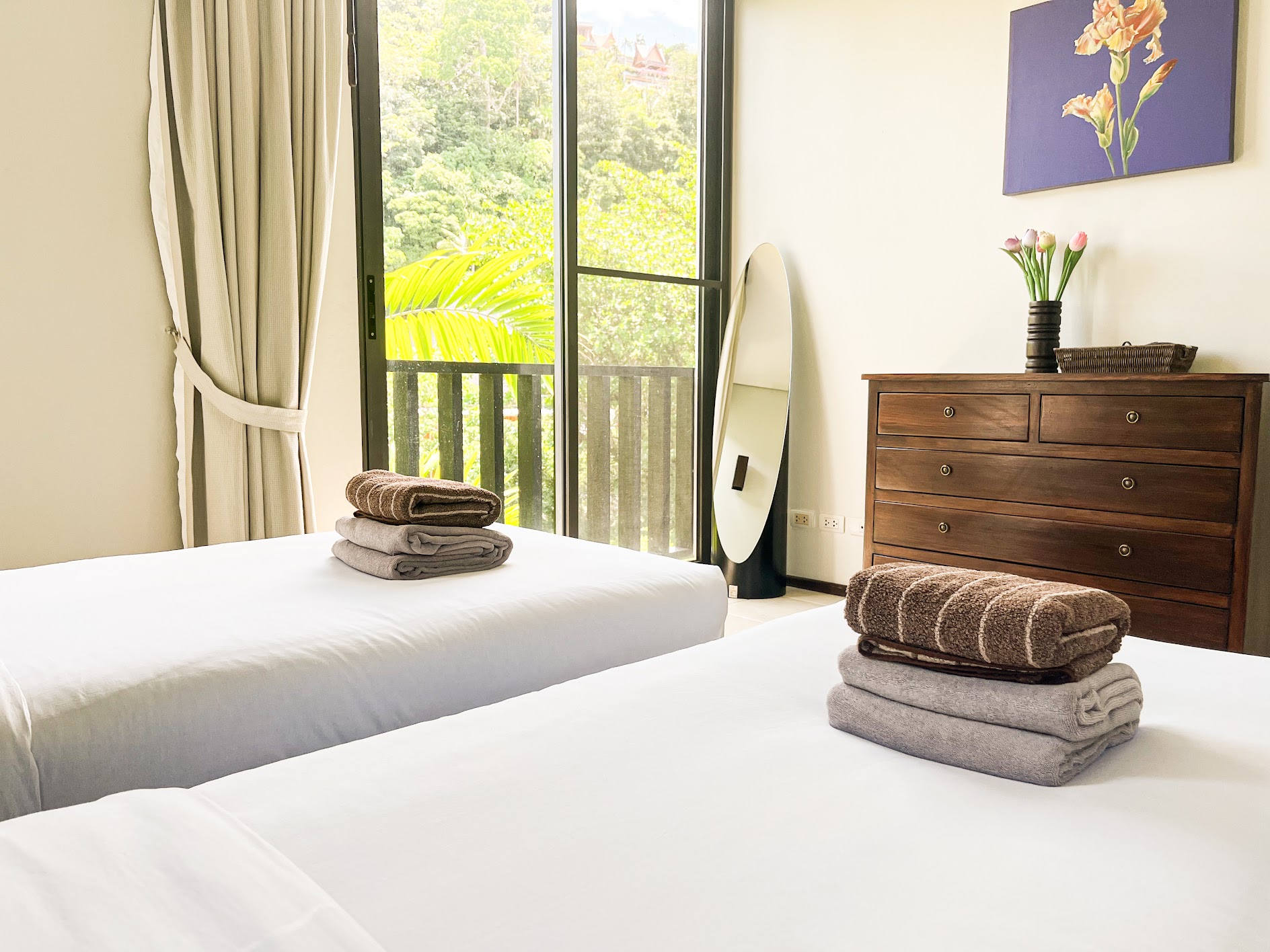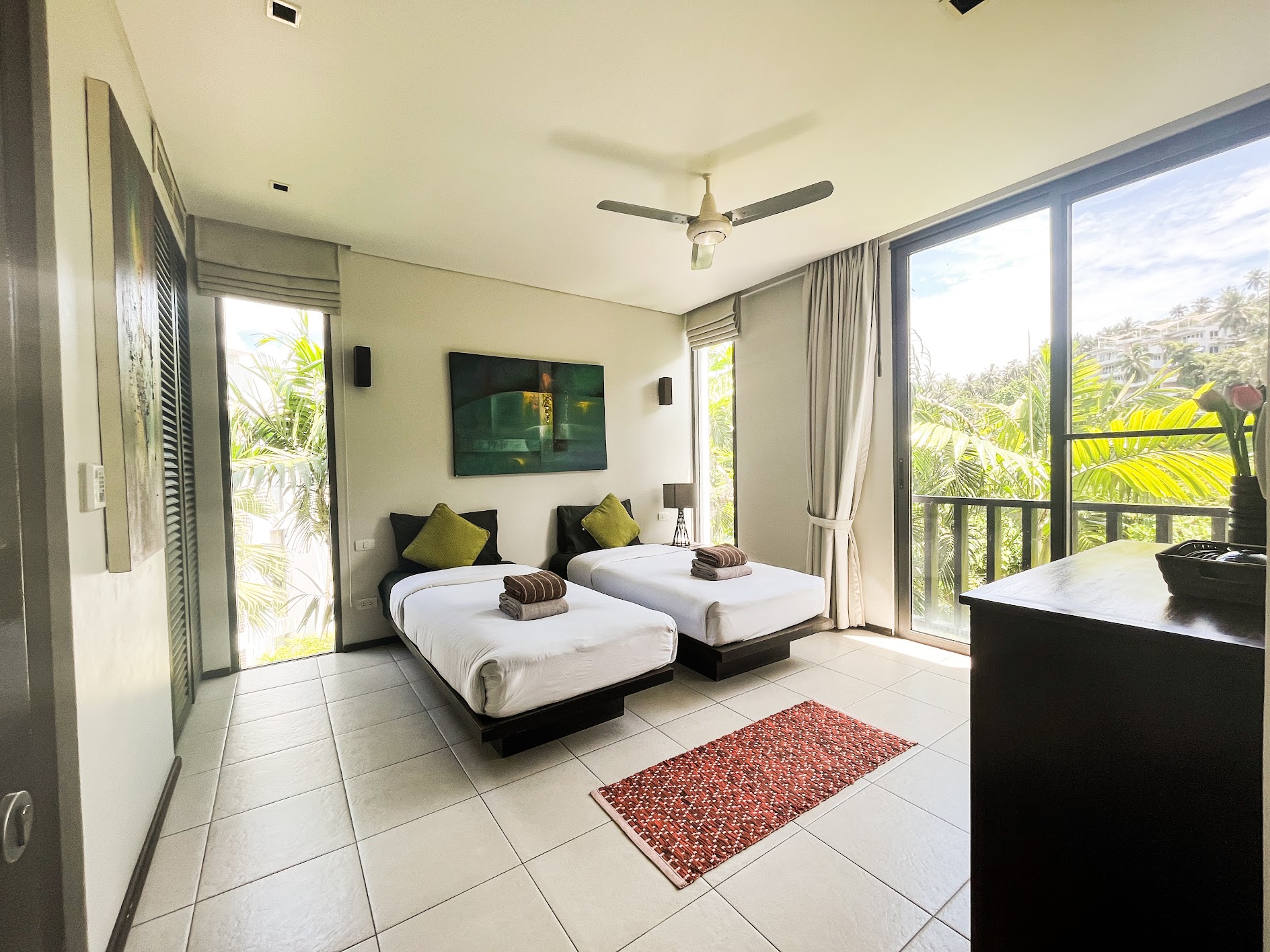 Idyllic location a few minute walk from the white sand of Surin and Bangtao beaches.